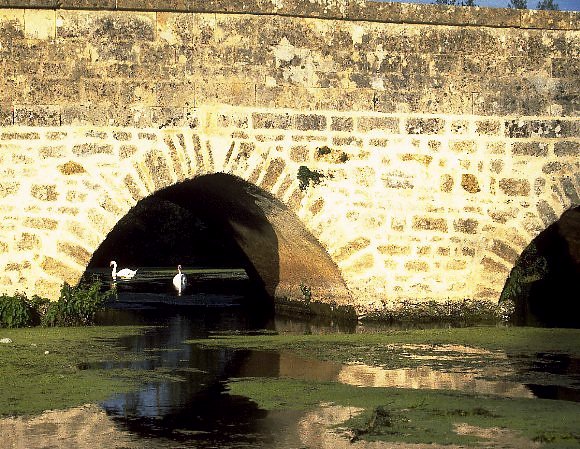 Le pont peut prendre au fil des saisons de multiples visages: à l'ouverture de la pêche, lors des inondations, aux soirées printanières ou comme ici lors d'un rallye équestre au lever du jour.![]()